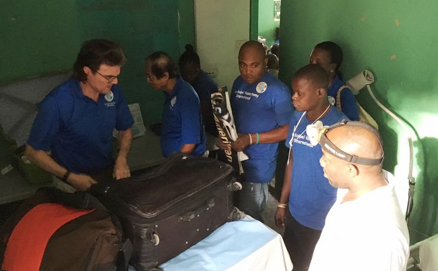 2. 5:30 PM: Picked up stored supplies, procedure tables, and Mayo stands at the Cap Haitian Health Network (CHHN) office. Also exchanged money there. NOTE: A special THANK YOU to Ted and Elisabeth Kaplan, founders of the CHHN, without whom NSVI’s work in Haiti would be much more difficult if not impossible.