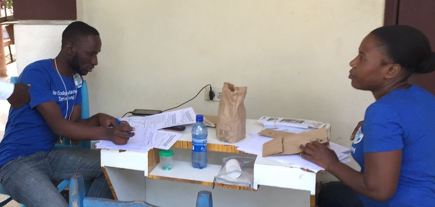 Leaving Steven and Maudelin with a clinic full of patients and driving to Centre de Sante 2000 in Limbe. With few patients, time for a photo. A room large enough for only 2 tables. Opportunity for Claissant to sharpen his skills after 3 months without a vasectomy.