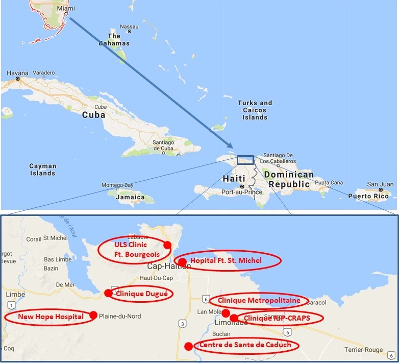 1. Arrived in Cap Haitien on American Airlines #2732 at 2:07 PM. After clearing customs and claiming luggage, we (1) stopped at Hopital Ft.St.Michel (HFSM) to distribute brochures to educators, (2) exchanged money through our Administrative Director, (3) picked up stored supplies, procedure tables, and Mayo stands at the Cap Haitian Health Network (CHHN) office, and (4) spent the evening at Hotel Roi Christophe, where we organized supplies to equip two teams and conducted a Vasectomy Workshop with models-based training for our vasectomy trainees from PaP